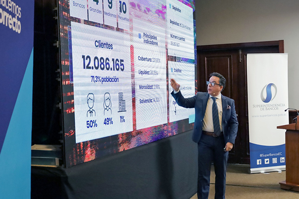 En ambos encuentros se expusieron cifras que muestran la dimensión y fortaleza del sistema financiero ecuatoriano: USD 61.970 millones en depósitos, USD 56.152 millones en cartera bruta, una cobertura de depósitos del 197,17 %, liquidez del 17,69 %, morosidad del 3,82 % y solvencia del 16,16 %. También se destacó el crecimiento del número de depositantes, del ahorro y de las operaciones de crédito, como señales de una mayor vinculación de la ciudadanía con el sistema formal.